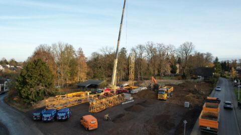 Die Bauarbeiten am Projektstandort Vettelhoven befinden sich in einer neuen Phase: Die Erdarbeiten sind abgeschlossen, der Kran steht.
