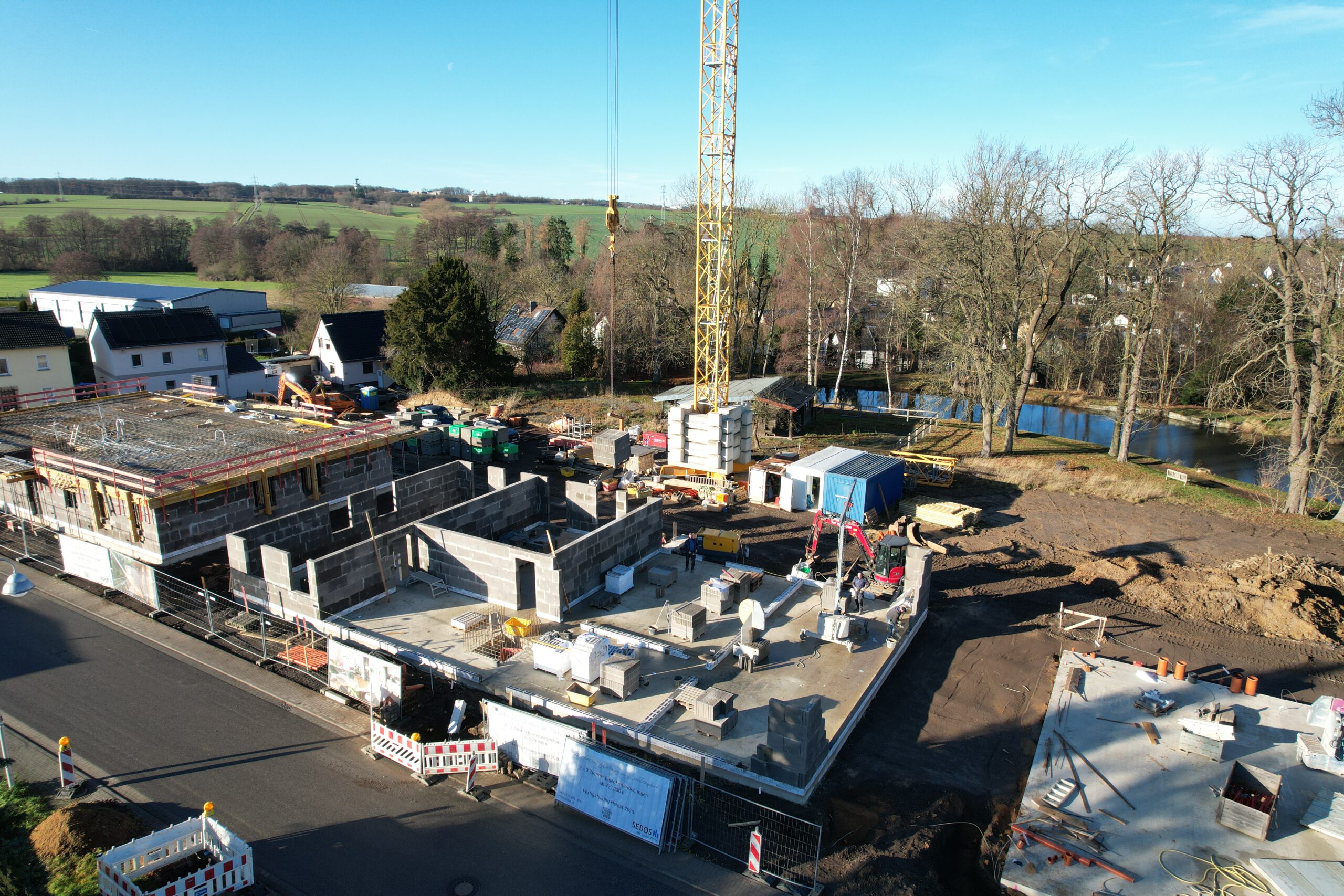 In Grafschaft-Vettelhoven schreitet das Bauvorhaben „Modernes Wohnen im Schlosspark“ bei optimalen Witterungsbedingungen fort. Die Arbeiten befinden sich aktuell in einer dynamischen Phase, in der die Grund-/Fundamentarbeiten abgeschlossen sind und die nächsten Stufen der Baustruktur zügig umgesetzt werden.